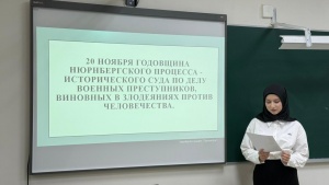 В преддверии 80-летия Нюрнбергского процесса, события, ознаменовавшего начало восстановления справедливости после Второй мировой войны, сотрудники и студенты ГБПОУ «ЧГКЭ» провели уникальные мероприятия, посвященные этому судьбоносному суду над нацистскими преступниками. 18 ноября уроки истории и библиотека превратились в сцену драматического представления, где ожила история правосудия. Студенты взяли на себя роли участников судебного разбирательства: от страстных обвинительных речей до убедительной защиты подсудимых и вынесения окончательного вердикта. Воссозданный диалог был настолько реалистичен, что вызвал глубокий эмоциональный отклик у всех присутствующих. Эффект погружения был усилен демонстрацией архивных черно-белых кадров настоящего Нюрнбергского процесса: изображения зала суда, душераздирающие свидетельства очевидцев и яркие фрагменты выступлений прокуроров стали мощным напоминанием о масштабах произошедших трагедий и необходимости бережного отношения к исторической памяти.Эта реконструкция стала не просто формальной данью уважения прошедшим событиям, но и мостом между поколениями. Благодаря сочетанию искусства, живых эмоций и достоверных исторических документов, молодые люди получили возможность ощутить связь времен и осознать непреходящую значимость памяти о героических поступках и жертвах войны. Вечер завершился минутой молчания, ставшей символичным актом почтения памяти погибших и утверждением принципа никогда не забывать уроков истории. В этой тишине особенно отчетливо прозвучала главная мысль: «Нами ничего не забыто! Нами никто не забыт!».