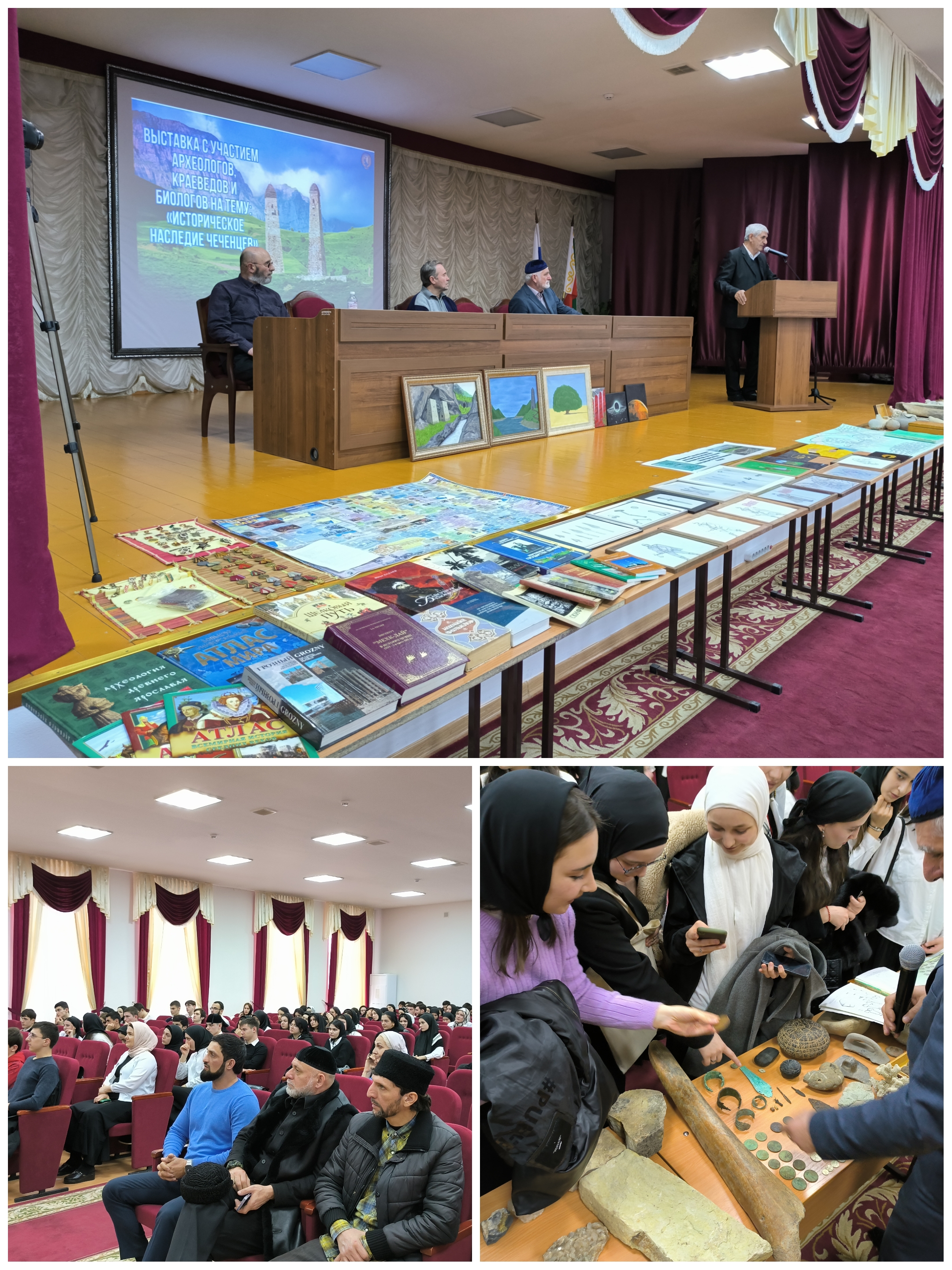 Каждый представитель поведал студентам историю по своим направлениям (археология, палеонтология, военная история). На выставке были представлены работы учащейся колледжа, которая сделала реконструкцию древнего Сержень-юртовского городо-убежища.