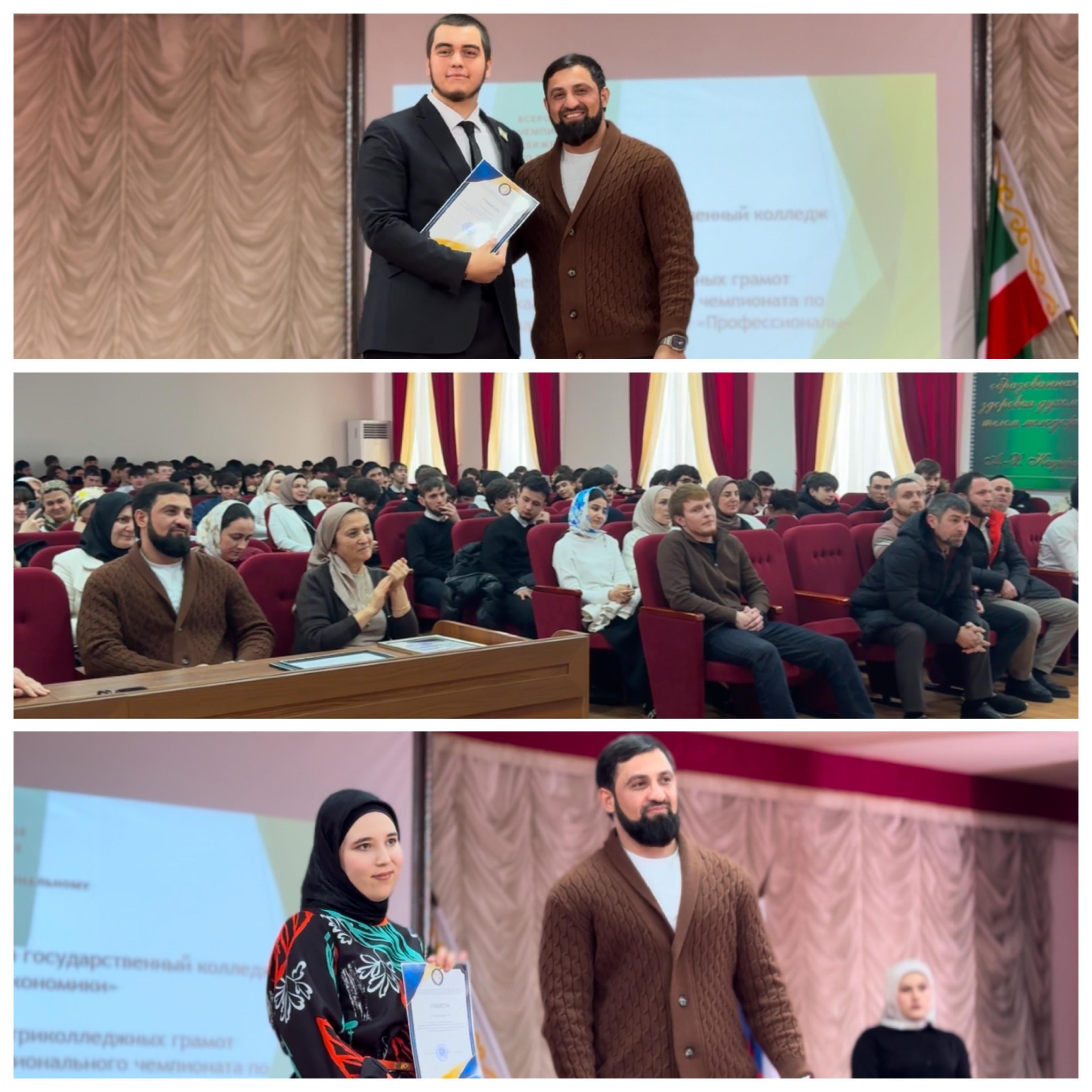 Вручили грамоты отличившимся представителям педагогического состава, поблагодарив их за преданность делу и высокий профессионализм.Поздравили и наградили победителей III регионального чемпионата “Профессионалы”, продемонстрировавших высокий уровень подготовки и мастерства в своих компетенциях. Не остались без внимания и наши талантливые студенты-активисты, чья энергия и инициатива делают жизнь колледжа яркой и насыщенной. Директор колледжа, Дебиев Магомед Шараудинович, выступил с поздравительной речью, подчеркнув важность достижений каждого и вручил заслуженные грамоты. Дала т1аьхье беркате йойла!